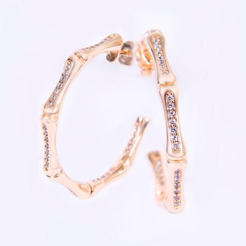 Um par de brincos de argola trabalhada com aplicação de microzircônias cristais. É delicado e luxuoso que te deixa em destaque em qualquer situação.