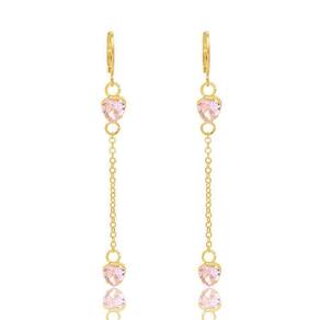 Brinco Argolinha Com Pedra Coração Vermelha Folheado A Ouro 18K