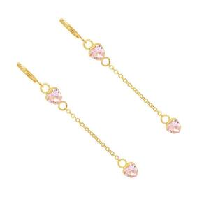 Brinco Argolinha Com Pedra Coração Vermelha Folheado A Ouro 18K