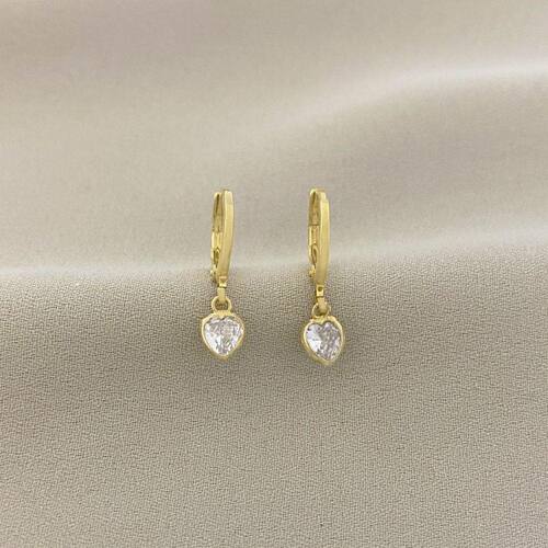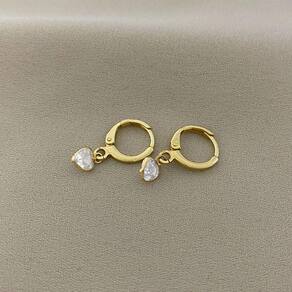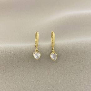 Brinco Argolinha com Pingente Coração Ponto de Luz de Zircônia Banhado a Ouro