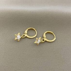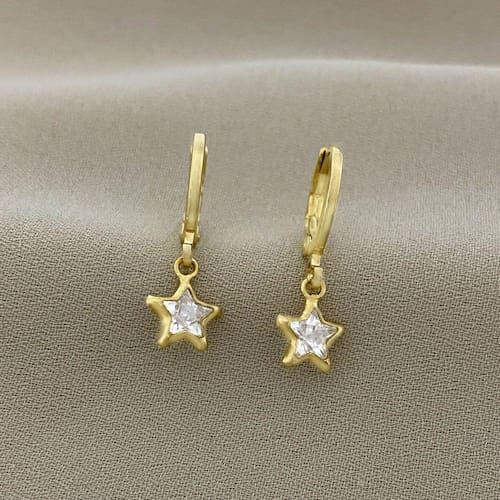 Brinco Argolinha com Pingente Estrela Ponto de Luz de Zircônia Banhado a Ouro