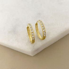 Brinco Argolinha Cravejada 8 Pedras de Zircônia Banhado a Ouro
