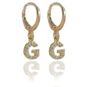 Esse brinco é composto por uma argolinha articulada seguida de uma letra toda trabalhada em zircônias, um encanto de acessório que tras um charme único assim como você