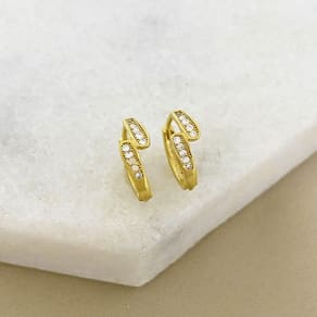 Brinco Argolinha Duplo Detalhe de Zircônia Banhado a Ouro