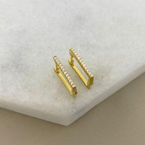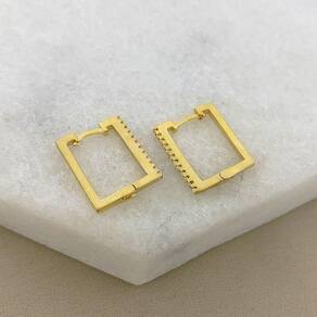 Brinco Argolinha Quadrada Cravejada com Zircônia Banhado a Ouro