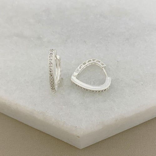 Brinco Argolinha Triangular Arredondada Cravejada com Zircônia em Prata 925