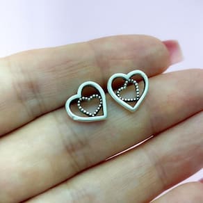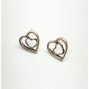 Par de Brincos Coração em Prata de Bali, com design polido e vazado e um coração rendado interno. Medindo 1 cm, são elegantes e delicados, ideais para uso feminino, adicionando um toque de sofisticação e tradição ao seu visual. Perfeitos para qualquer ocasião!