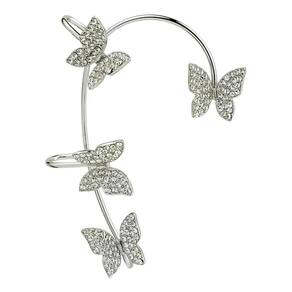 Brinco Borboleta Strass Prateado - Clip K-Pop Elegante