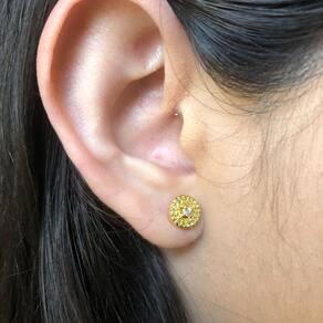 Sua forma geométrica com uma composição de pedras de zircônia ao centro faz desse brinco um acessório delicado e sútil, porém, em pequenos detalhes transforma suas composições diárias em look's completos e marcantes.