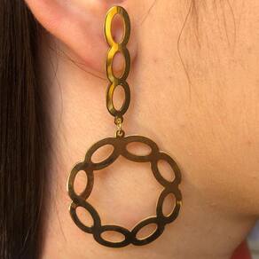O Brinco Grande com Fio e Círculo com Arcos Vazados é um acessório atemporal que se encaixa bem em qualquer ocasião e em qualquer composição. Uma peça luxuosa com um design exclusivo.