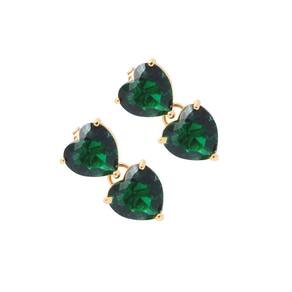 Brinco Com Pedra Fusion Coração Verde Folheado A Ouro 18k