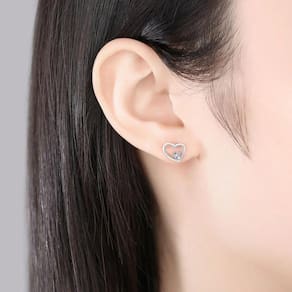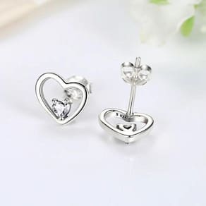 "Brilho eterno em forma de coração: este delicado brinco de prata 925 é adornado com zircônias cintilantes, capturando a beleza efêmera do amor e da elegância. Uma fusão perfeita entre design romântico e sofisticação atemporal."