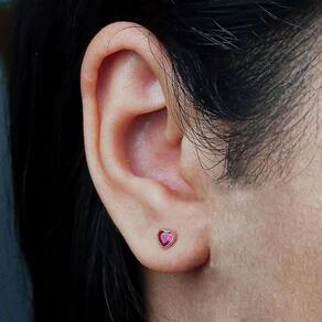 Brinco Coração Com Zircônias Vermelhas Em Ouro 18K