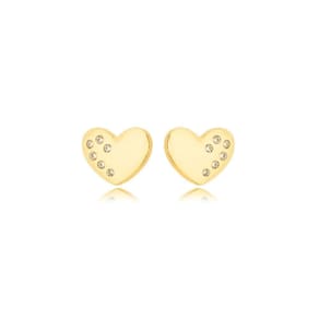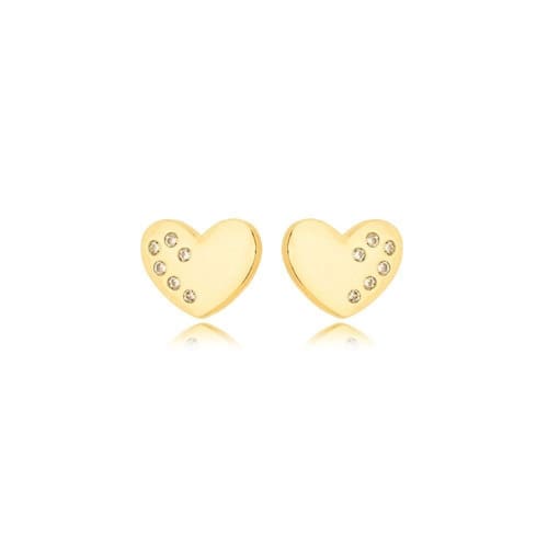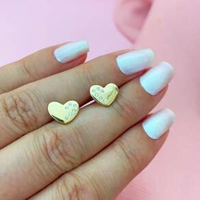 Brinco Coração Lateral cravejada Banhado a Ouro 18k 0,8cm - Brinco Coração Lateral cravejada Banhado a Ouro 18k