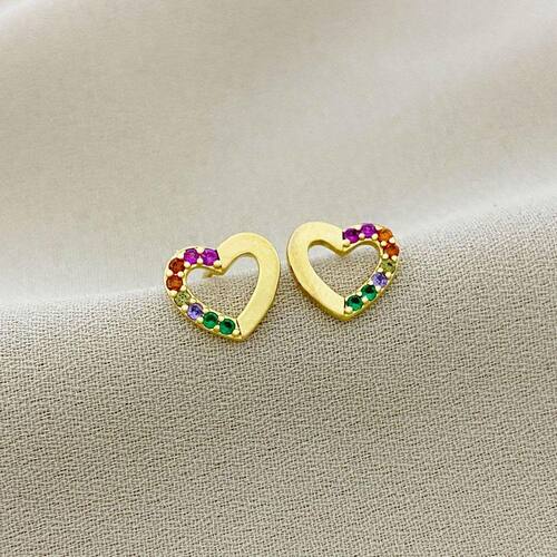 Brinco Coração Metade com detalhes de Zircônia Banhado a Ouro