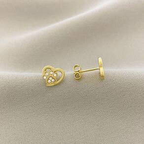 Brinco Coração Patinha com detalhes em Zircônia Banhado a Ouro