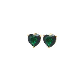Brinco Coração Pedra Fusion Verde Folheado A Ouro 18k