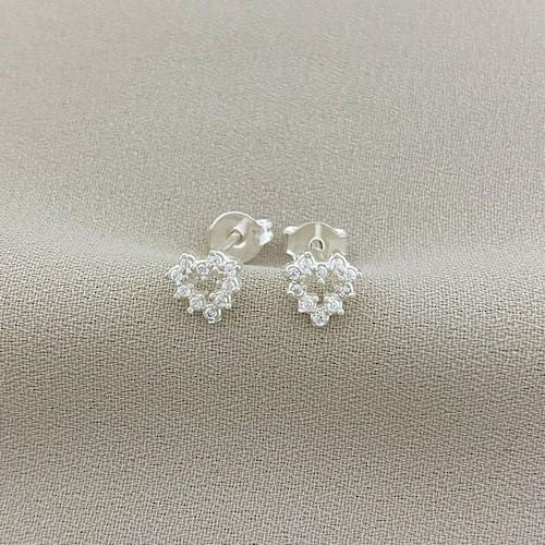 Brinco Coração Vazado Cravejado com Zircônia em Prata 925