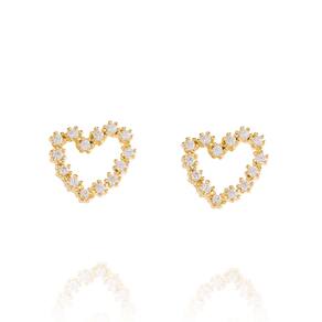 Brinco Coração Vazado Cravejado de Zircônia Semijoia Banho de Ouro 18K : Dimensões: Altura: 0,2 cm , Largura: 1 cm , Comprimento: 1 cm , Peso: 1,2 g. Perfeito para Embelezar e Completar seu Estilo com Delicadeza e Sofisticação.