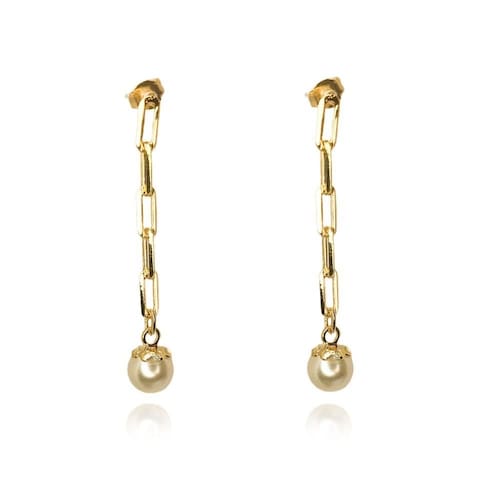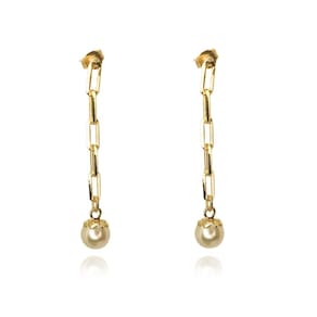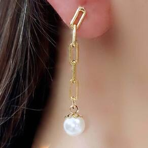 Esse brinco é composto por uma corrente com uma pérola na ponta. Atemporal e versátil, as pérolas não têm restrições e podem ser usadas de várias maneiras diferentes, como item principal ou quem sabe parte secundária de uma composição exclusiva dos seus looks e essa corrente deixa a peça ainda mais charmosa.