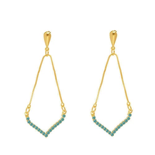Brinco Corrente Veneziana Strass Azul Turqueza Folheado A Ouro 18k