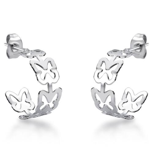 Brinco de Argola Borboleta de Tarraxa Prateado Aço Cirúrgico