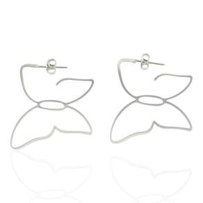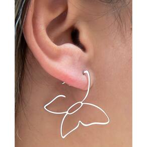 Brinco de Argola Broboleta de Tarraxa Prateado Aço Cirúrgico