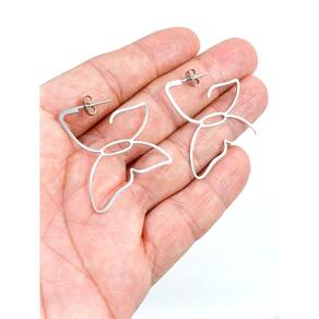 1 x Brinco de Argola Broboleta de Tarraxa Prateado Aço Cirúrgico 1 x Embalagem