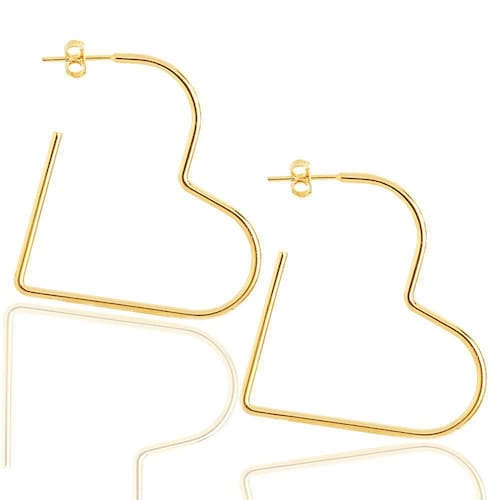 Brinco de Argola Coração Médio Folheado A Ouro 18K