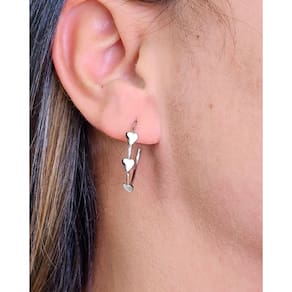 1 x Brinco de Argola Feminino Coração Prateado Aço Cirúrgico 1 x Embalagem