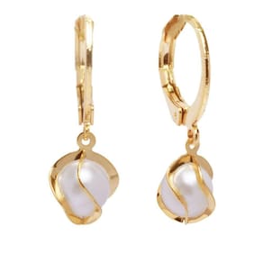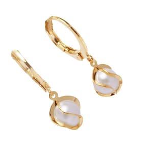 Brinco De Argolinha Com Perola Com Detalhe Folheado Ouro 18K