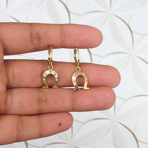 Brinco De Argolinha Ferradura Cavalo Folheado A Ouro 18k