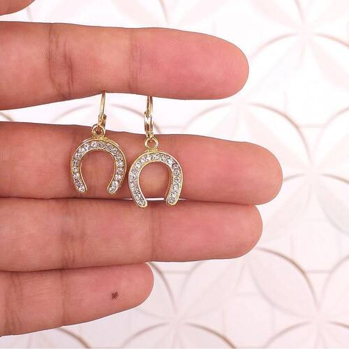 Brinco De Argolinha Ferradura Com Strass Folheado A Ouro 18k