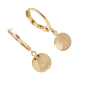 Brinco De Argolinha Religioso Nossa Senhora Folheado A Ouro 18k
