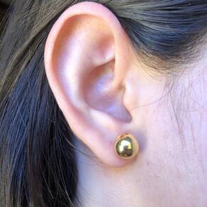 Esse Brinco de Bola Lisa é uma novidade que trazemos para você elaborar seus looks e combinações exuberantes com as mais diversas possibilidades, essa peça é um brinco de tamanho pequeno com uma bolinha dourada.