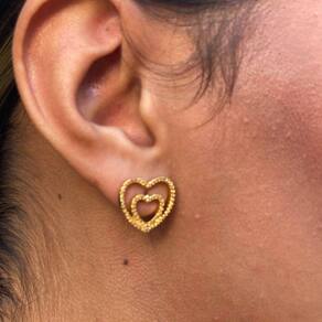 Esse brinco traz consigo um design romântico em forma de coração e brilho com as pedras em zircônias.