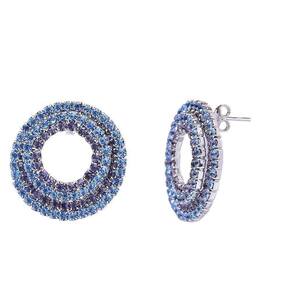 Brinco De Cristais Redondo Azul Folheado A Metálico