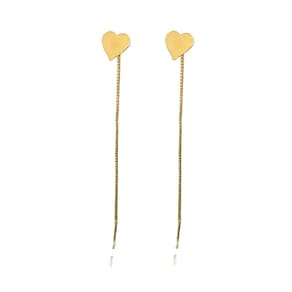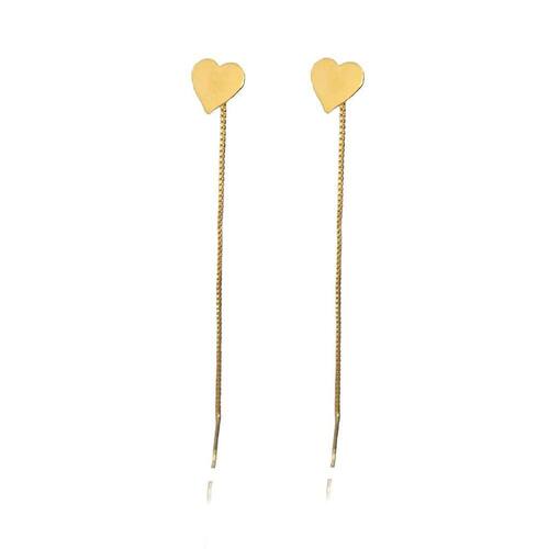 Brinco de fio com coração chapado folheado em ouro 18k