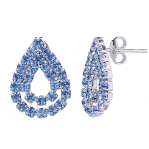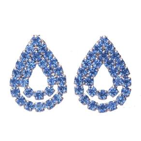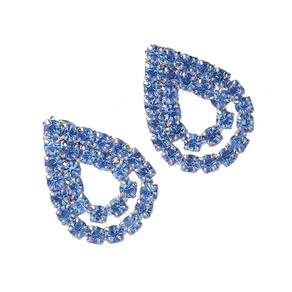 Brinco De Gota Dupla Com Critais Azul Claro Folheado A Metalico
