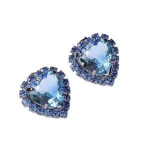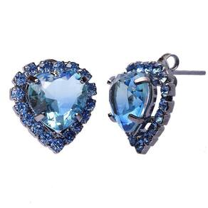 Brinco De Pedra Coração Azul Com Cristais Folheado A Grafite