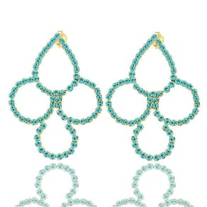 Brinco De Strass Azul Turquesa Folheado A Ouro 18K