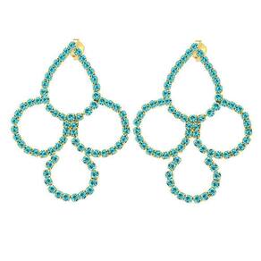 Brinco De Strass Azul Turquesa Folheado A Ouro 18K