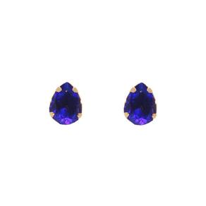 Brinco Delicado Pedra Gota Pequeno Azul Folheado A Ouro 18K