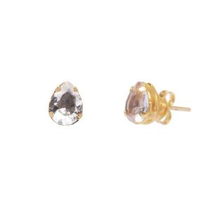 Brinco Delicado Pedra Gota Pequeno Strass Folheado A Ouro 18k