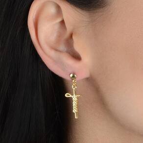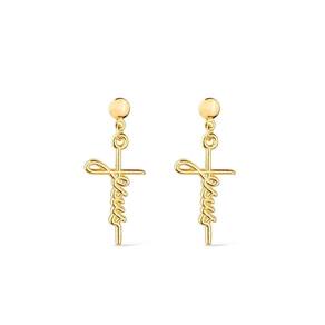 Brinco Dourado De Cruz Com A Palavra Jesus