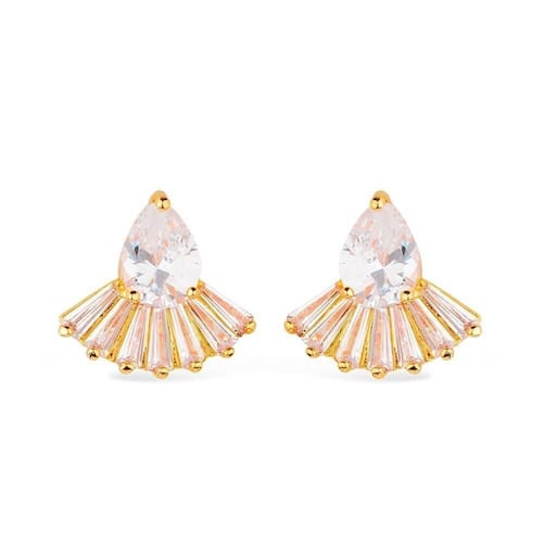Brinco Dourado Gota E Coroa Com 8 Pedras De Zircônia