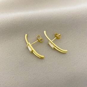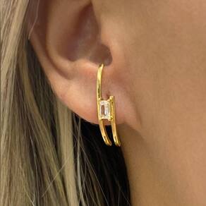 Brinco Ear Hook com Ponto de Luz de Zircônia Banhado a Ouro