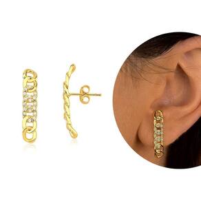 Não perca a oportunidade de adquirir o Brinco Ear Hook Dour Elos Com Zircônias Semijoia Lizzy Fatin e adicionar um toque de elegância e brilho ao seu visual. Garanta já o seu!