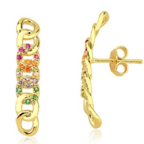 - Composição da embalagem: 01 par de brincos Ear Hook dourados com micrô zircônias cravejadas coloridas