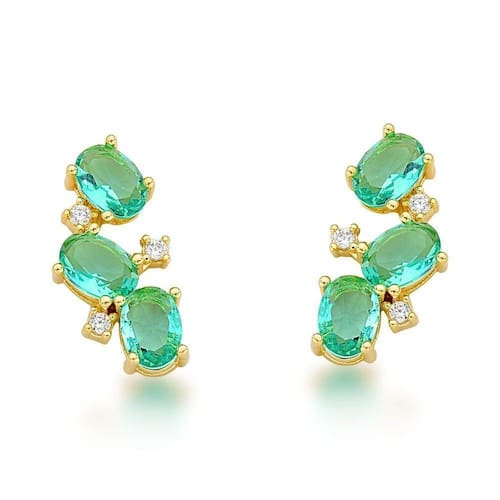 Brinco Earcuff Ziconias ovais Banhado a Ouro 18k Verde Claro -